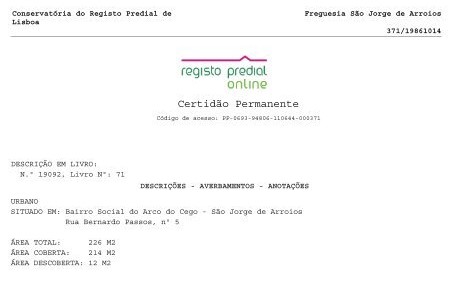 O CIMI, o código que regula o IMI – imposto municipal sobre bens imobiliários e as áreas descritas na caderneta predial do imóvel.